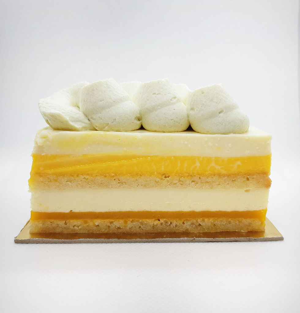 Conține blat de cocos și lămâie verde, mousse mango, inserție fructul pasiunii